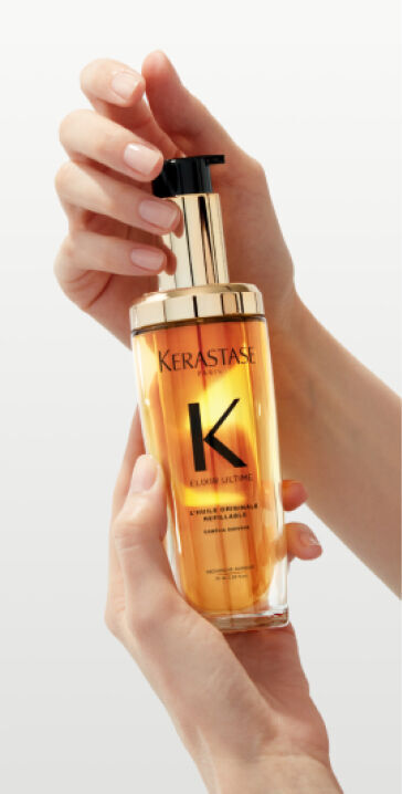 Kérastase Elixir Ultime is a beautifying, versatile leave-in hair oil with a lightweight formula. This iconic hair oil is now refillable, with advanced anti-frizz performance on all hair types, leaving the hair protected, shiny and soft.