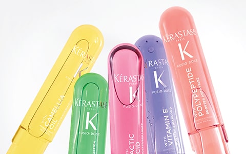Fusio-Dose is an exclusive Kérastase professional treatment offering personalized solutions for instant hair transformation. Fusio-Dose addresses two hair concerns simultaneously using an appropriate Booster and Concentré based on your hair type. The products are powered by concentrated active ingredients, for more performance.