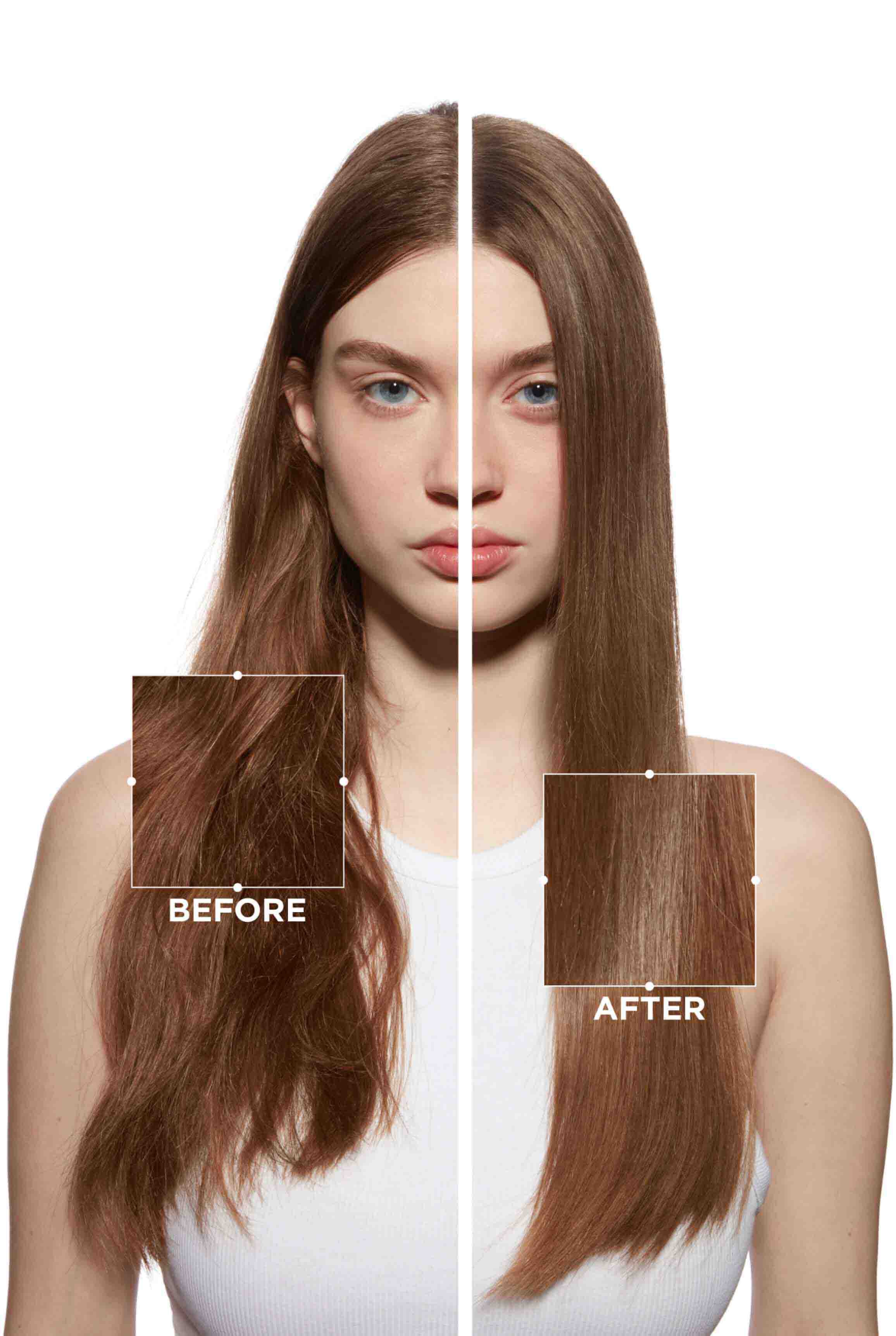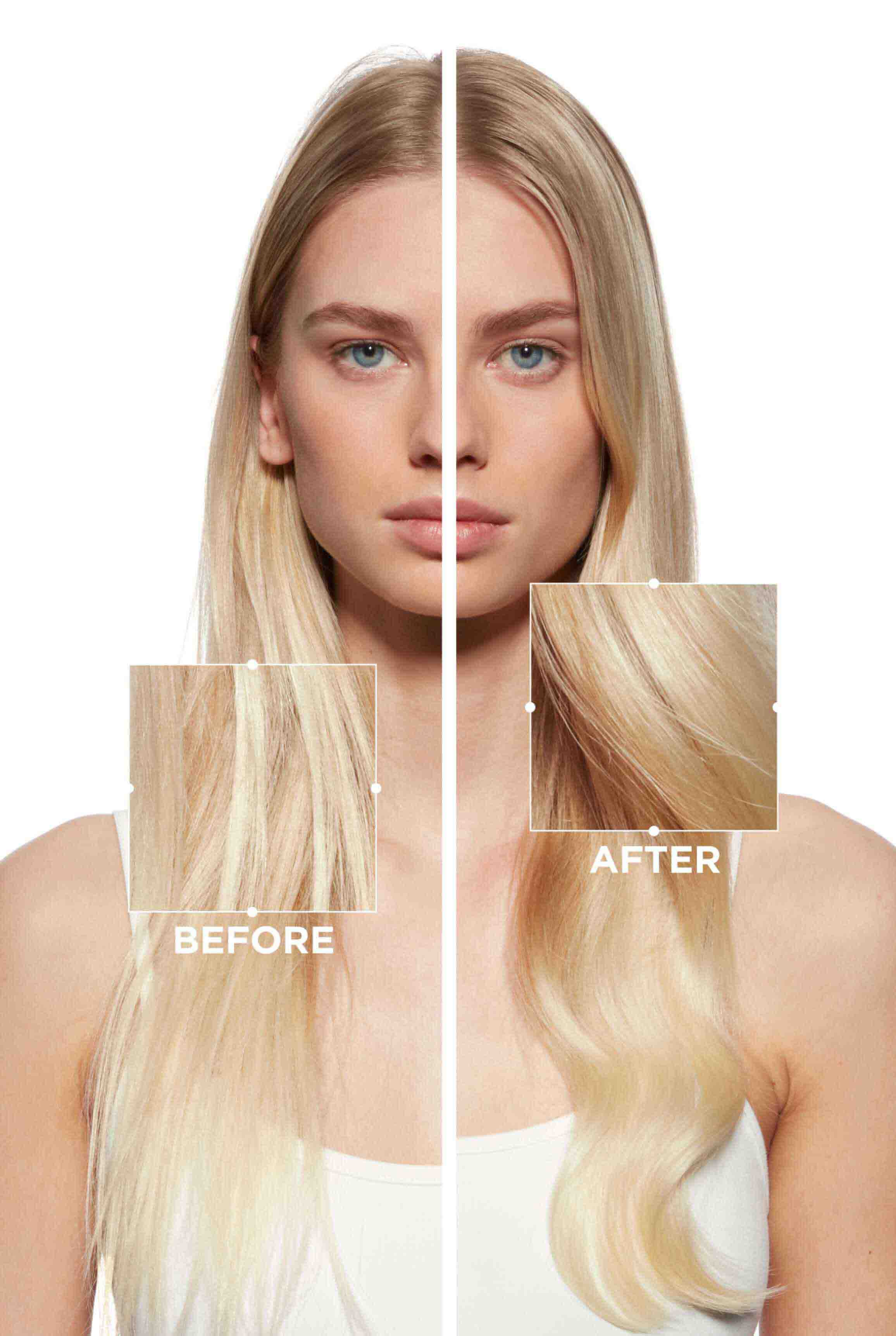 *Illustration of the contemplated results obtained after applying by a professional hairdresser in salon of a Fusio-Dose treatment. Instant dual benefits.