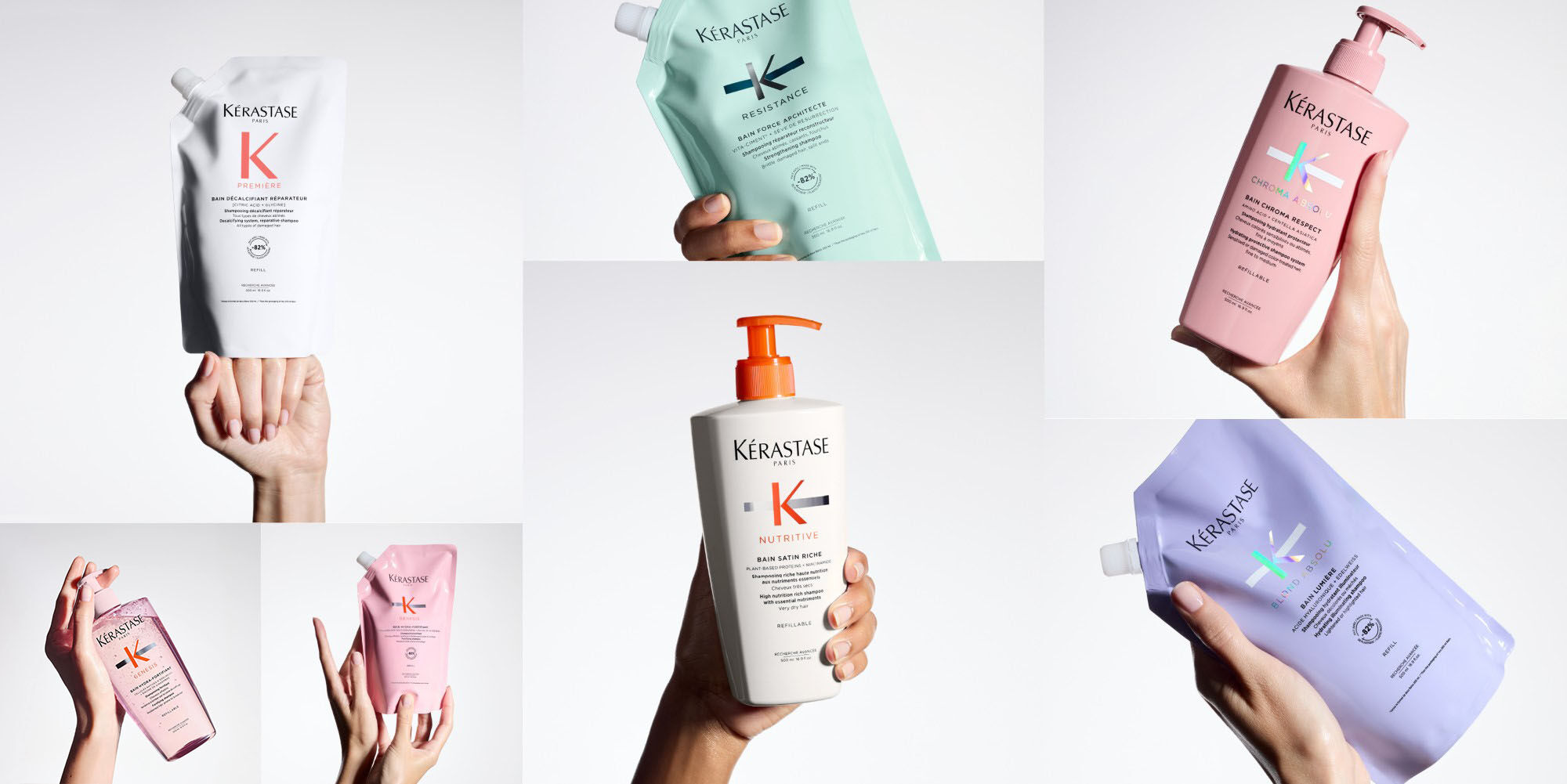 In 2022, Kérastase launched refillable shampoos on a scale, with all retail shampoo bottles made of 100% recycled plastic.