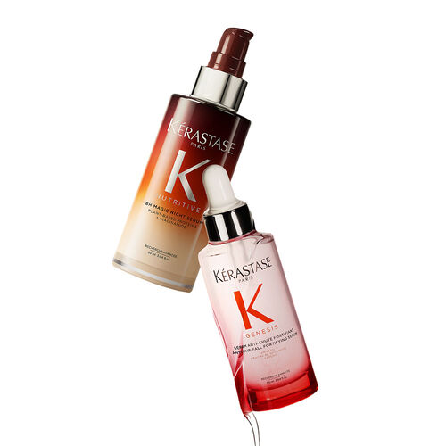 Discover the Magic Night Duo for fortified roots & nourished ends. Includes 8H Magic Night Serum paired with Anti-Chute Fortifiant Serum.